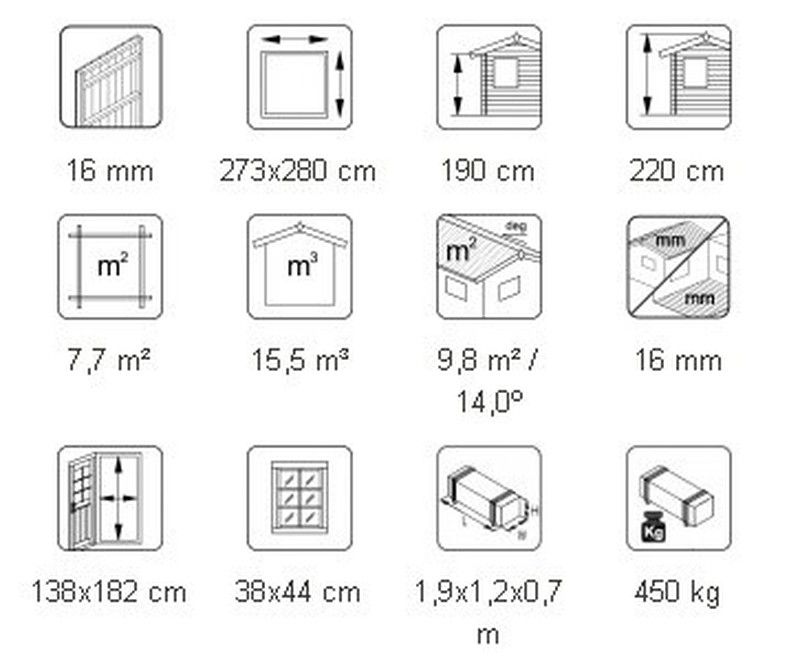 ESPECIFICAÇÕES DO PRODUTO: Medidas exteriores: 273 x 280 cm Altura da parede: 190 cm Volume: 15,5 m3 Porta / janela de vidro: plexiglas Janela fixa, medidas da passagem: 38 x 44 cm Porta, medidas da passagem: 138 x 182 cm telhado: 16 mm Superfície do telhado: 9,8 m2 Inclinação do telhado: 14,0º Peso: 450 kg EM CASO DE ESCOLHA SEM TRATAMENTO RECOMENDAMOS: -Tinta verniz de base aquosa ou tinta Lasur (que penetra profundamente na madeira permitindo que a madeira respire e não formando um filme). QUAL É O TRATAMENTO? Como temos nossos próprios banhos de tratamento para tratamento por imersão em marrom, cinza e transparente, cabines e outros itens maiores podem ser encomendados tratados com Axil 3000 P da Sarpap & Cecil Industries líquido de tratamento solúvel em água, garantindo tratamento nas classes 1-3. Além dos componentes de proteção da madeira contra danos biológicos e proteção contra radiação UV, este primer pode conter três pigmentos diferentes. O tratamento por imersão marrom e cinza pode realçar a cor da sua casa, mas o imersão transparente funciona para o estágio de preparação da pré-pintura. O pigmento desbota gradualmente com o tempo, mas isso não tem efeito negativo no desempenho do tratamento. ACESSÓRIOS OPCIONAIS: - 2 rolos de tecido asfáltico - 4 pacotes de telha asfáltica - 1 caixa de pregos (para o tecido asfáltico ou telhas)