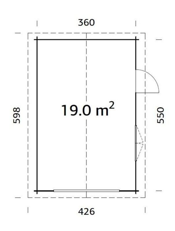 ESPECIFICAÇÕES DO PRODUTO: Dimensões externas: 380 x 570 cm Altura da parede: 217 cm Volume: 45,9 m3 Tipo de janela / porta: Jardim + Porta / janela de vidro: vidro duplo, janela 3-6-3 mm, tamanho da passagem: 119 x 89 cm Porta, medidas da passagem: 74 X 175 cm Porta da garagem: sem porta Tábuas do tejadilho: 19 mm Superfície do tejadilho: 25,4 m2 Inclinação do tejadilho: 16,3º Peso: 1200 kg Aconselhamos EM CASO DE ESCOLHA SEM TRATAMENTO: - Tinta verniz Tinta à base de água ou Lasur (que penetra profundamente na madeira, deixando a madeira respirar e não formando película). QUAL É O TRATAMENTO? Como temos nossos próprios banhos de tratamento para tratamento por imersão em marrom, cinza e transparente, cabines e outros itens maiores podem ser encomendados tratados com Axil 3000 P da Sarpap & Cecil Industries líquido de tratamento solúvel em água, garantindo tratamento nas classes 1-3. Além dos componentes de proteção da madeira contra danos biológicos e proteção contra radiação UV, este primer pode conter três pigmentos diferentes. O tratamento por imersão marrom e cinza pode realçar a cor da sua casa, mas o imersão transparente funciona para o estágio de preparação da pré-pintura. O pigmento desbota gradualmente com o tempo, mas isso não tem efeito negativo no desempenho do tratamento. COMPLEMENTOS: - 6 embalagens de tela asfáltica - 10 embalagens de telha asfáltica - 1 caixa de pregos (para a tela ou telhas asfálticas) - Tubo de drenagem QVVRviil6 - Arrecadação lateral - Beirado lateral - Plantadeira 120 cm - Parede interna LAZZW44-3857-1 - Porta adicional MTU44-24R - MTU00-31Y
